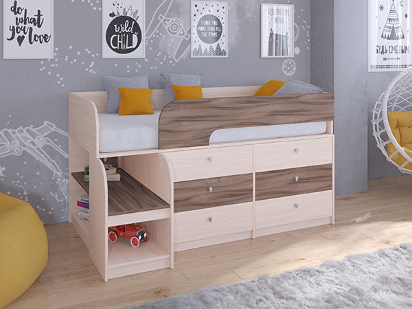 - большой выбор вариантов комплектаций – поможет легко подобрать оптимальный вариант, для размещения игрушек, книжек, личных вещей, что с экономит пространство, так же вариант со столом избавит Вас от покупки отдельного стола для ребенка .