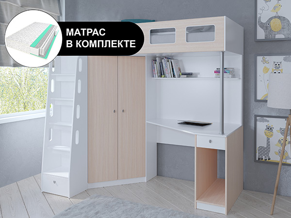 Кровать чердак АСТРА 7 Белый с пружинным матрасом